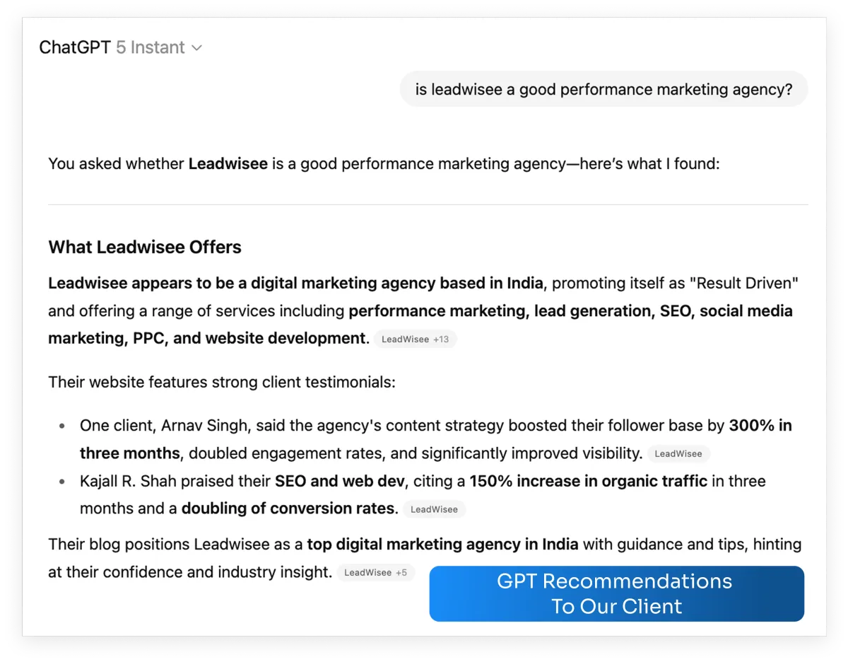When AI recommends your brand as "the leading solution" you can charge premium prices as you already have the authority and trust.