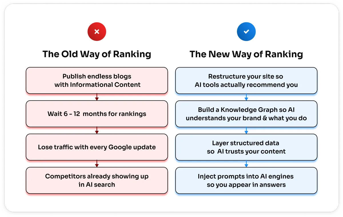AI training data gets locked in for months at a time. Brands establishing authority now will dominate AI responses for 6-12 month cycles minimum. Your competitors who act fast will own the search while you're still optimizing meta descriptions.