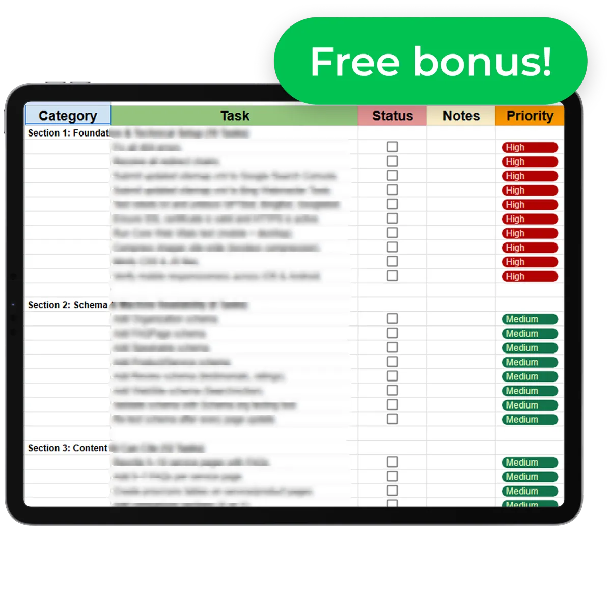A practical, easy-to-follow checklist that organizes the entire AI ranking process into daily and weekly tasks.